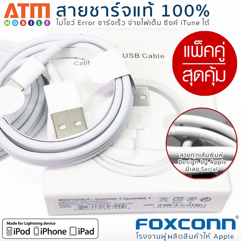 Home » ราคาถูก » แพ็คคู่ สายชาร์จไอโฟน ของแท้ 100% โดย Foxconn มี Serial ชิป E75 มีซีลกันปลอม USB Lightning Cable Ap