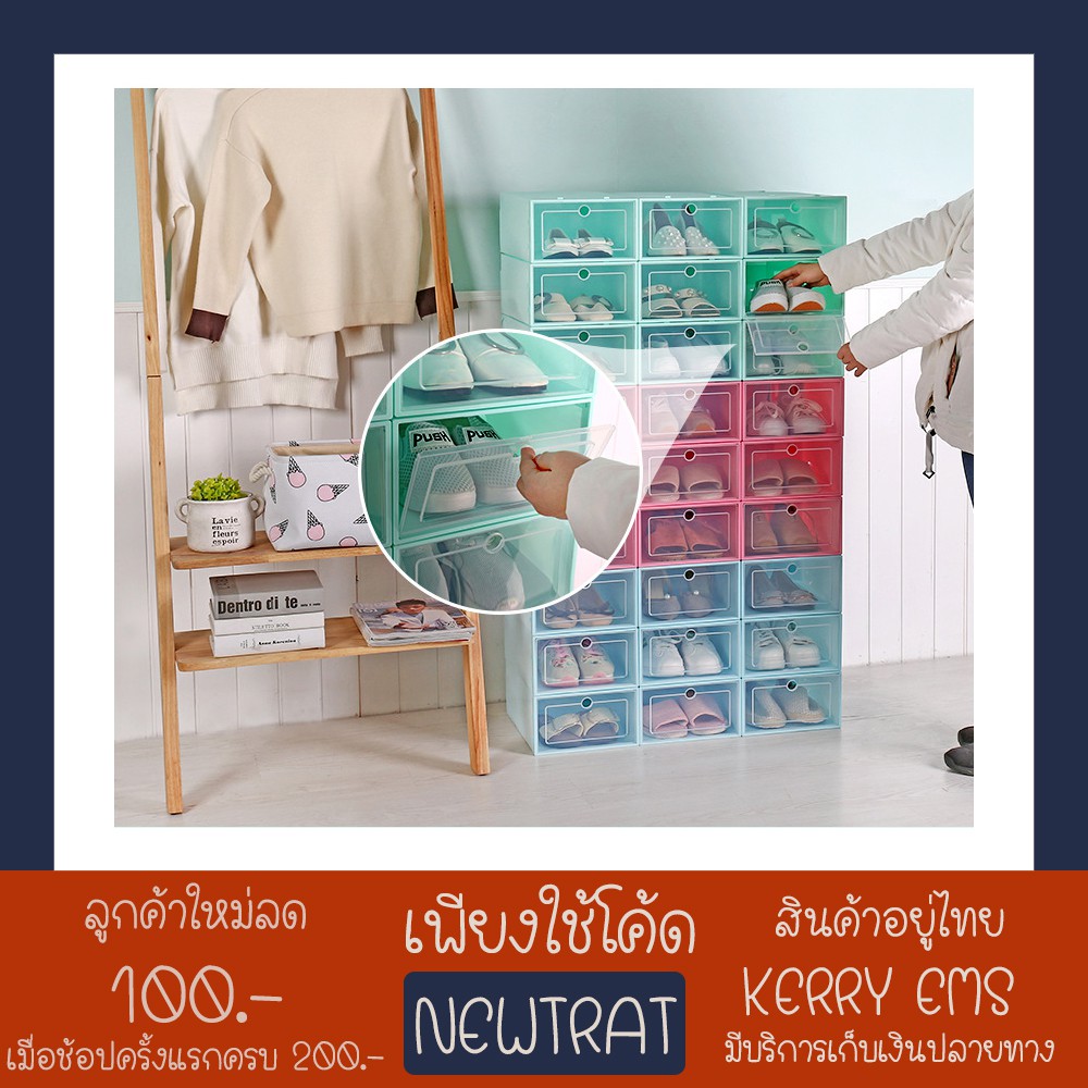 - - รีวิว (กลาง )กล่องรองเท้าขนาดกลางใส่ได้ถึง42 กล่องใส่รองเท้าแบบประตูเปิดปิด กล่องเก็บรองเท้า กล่องใส่ของ พ