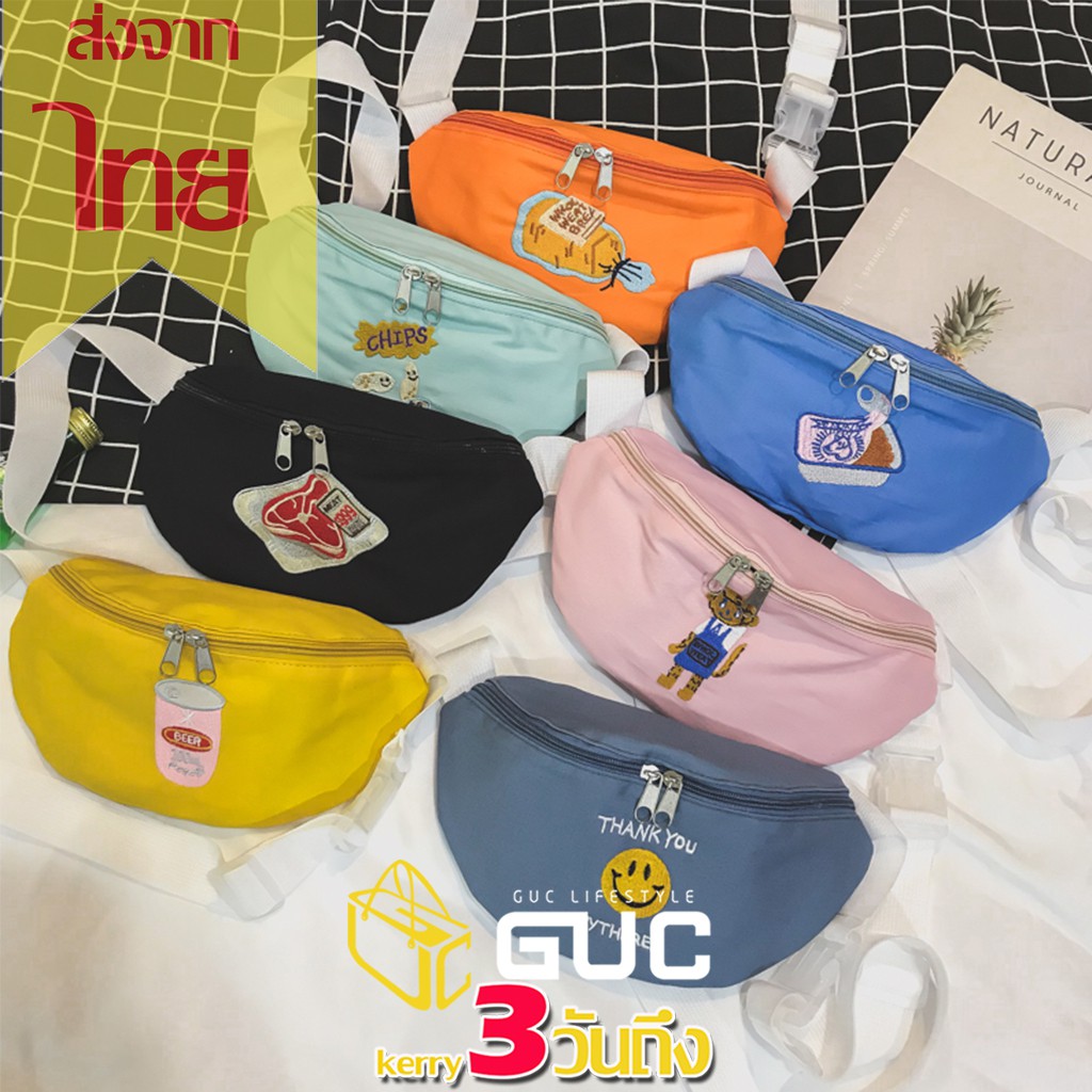 รีวิวสินค้า ท่านโชคดีแล้วที่มาเจอ GUC กระเป๋าคาดอกและเอวสีพื้นน่ารักปักตัวการ์ตูนด้านหน้า(B559)