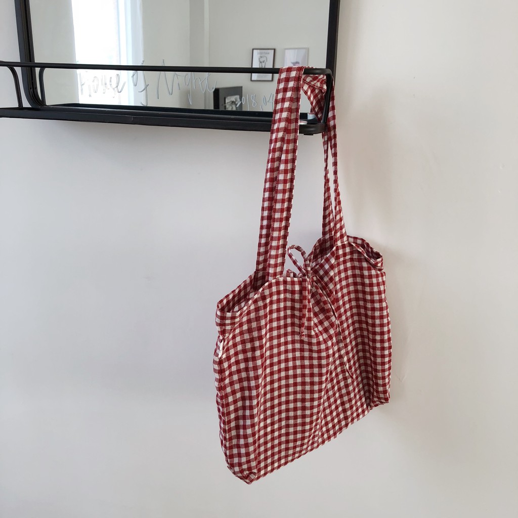- ชื่อสินค้า พร้อมส่งRed scott Korean tote กระเป๋าผ้าลายสก็อต สไตล์เกาหลี
