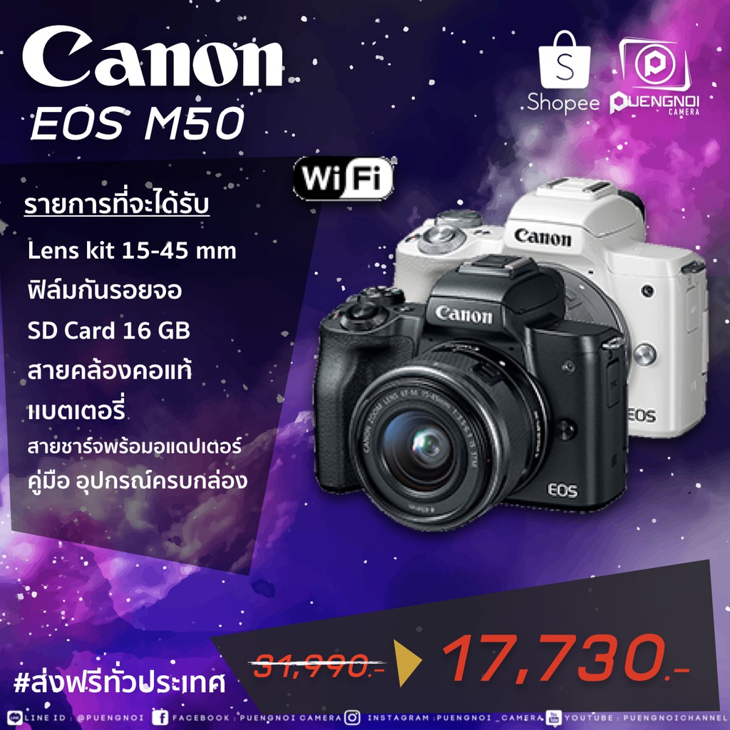 Canon Eos M50 ใหม่ล่าสุด ถ่ายสวย ฟังก์ชันครบ สามารถสั่งซื้อออนไลน์ จัดส่งสินค้ารวดเร็วทันใจ ได้รับสินค้าแน่นอน สามารถเก็บเงินปลายทางได้ ปลอดภัย มั่นใจได้สินค้า 100%