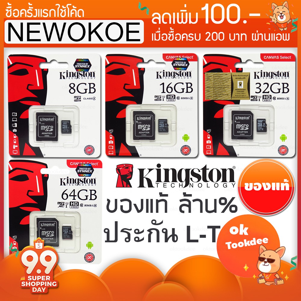 ค้นหาร้านขาย Kingston แท้ Memory Card Micro SDHC 8GB - 128GB ประกัน L-T มีสินค้าพร้อมจัดส่ง สั่งซื้อง่ายๆ ชำระเงินปลายทางได้