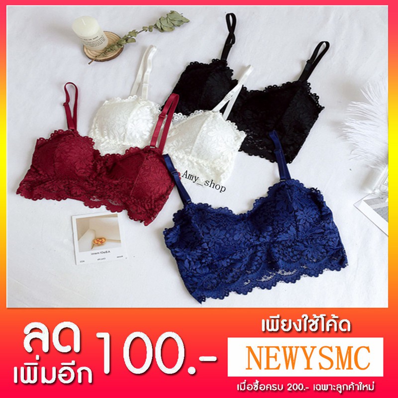 สินค้าที่เข้ารวมลดราคา กดดูได้ที่ Amy_shop บราลูกไม้ NO.Y681 บราลูกไม้แบบใหม่4สี แบบสวม งานผ้านิ่มมาก ไม่คัน ใส่สบาย มีฟองน้ำ สายปรับได้ เฉดสีใหม่ งานจริงตามภาพเลยนะคะ (สีดำ) (สีฟ้า) (สีขาว) (สีแดง) SIZE:32-40
