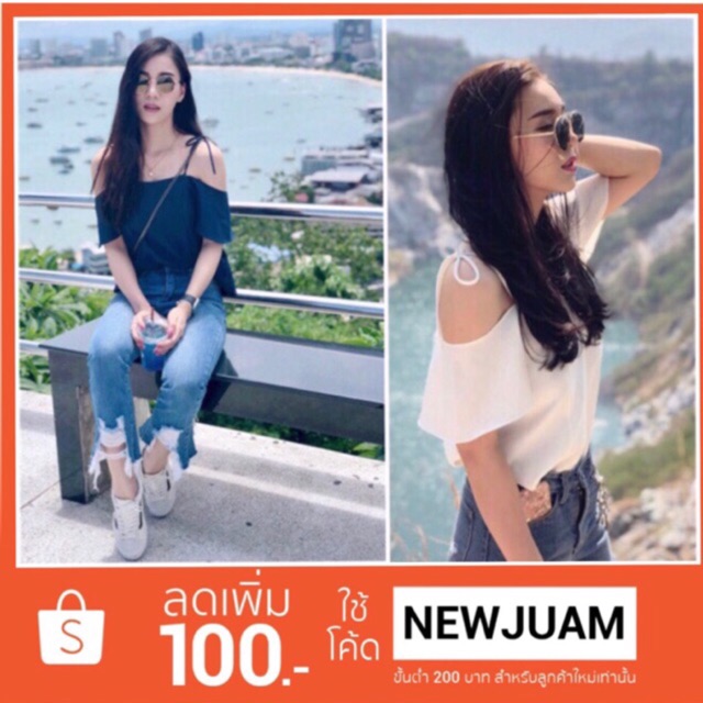 - - โปรโมชั่นพิเศษ เสื้อเปิดไหล่สายเดี่ยวผูกโบว์ งานน่ารัก ผ้าสวย ใส่สบาย