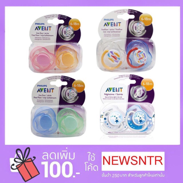 - Philips AVENT จุกนมหลอก รุ่น Freeflow ,รุ่นแฟชั่น,รุ่นเรืองแสง 6-18 เดือน แพ็คคู่(BPA Free) (2 ชิ้น) ราคาถูก