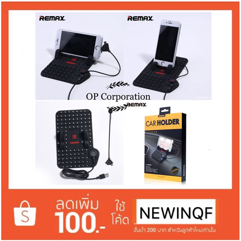 - ชื่อสินค้า Remax Car Holder แท่นวางโทรศัพท์พร้อมที่ชาร์จแบต